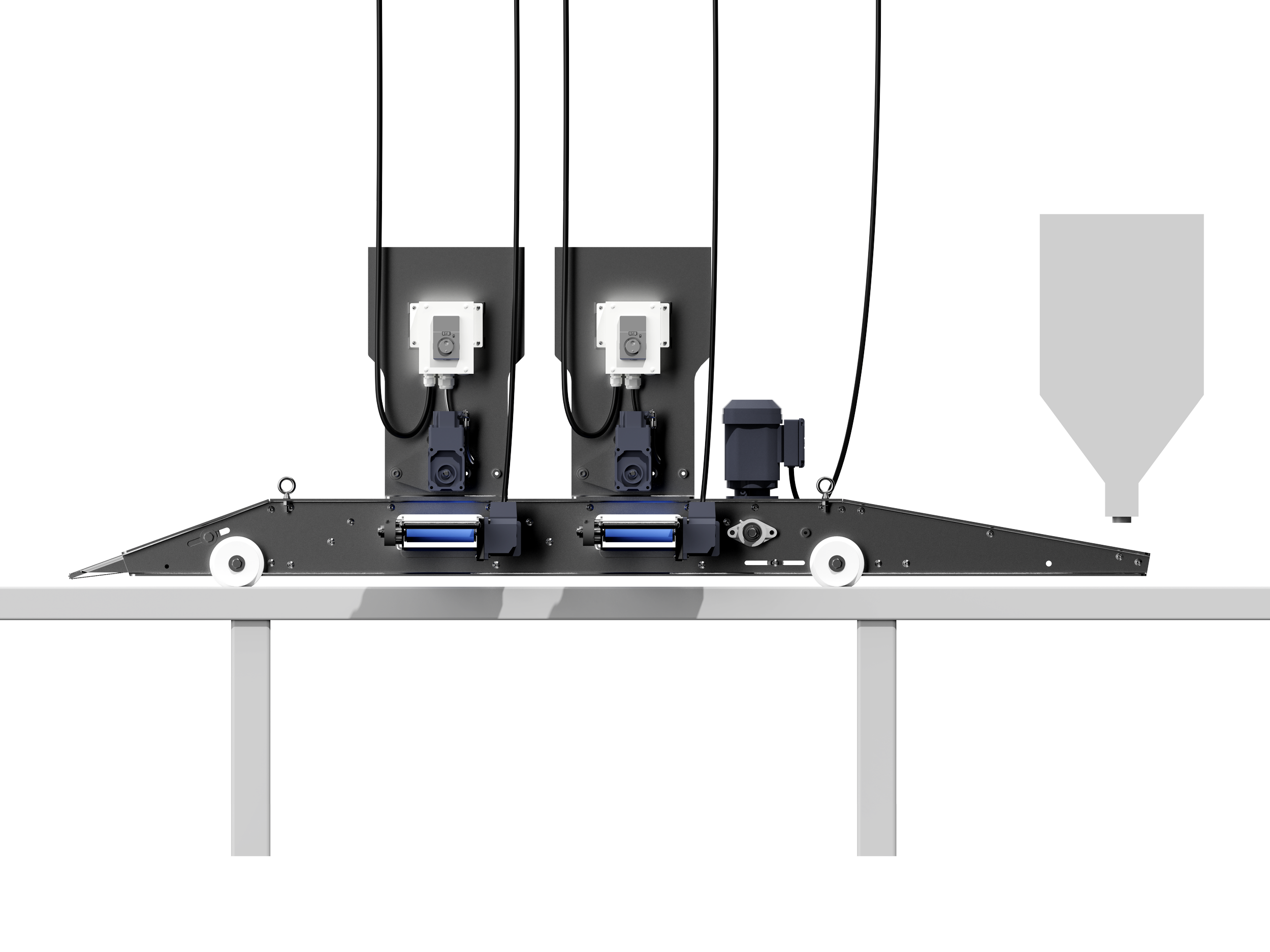 Modular Cookie Topper This is a machine that I designed and constructed for use in a food production facility. It’s designed to law down even coats of toppings across cookies during mass production.