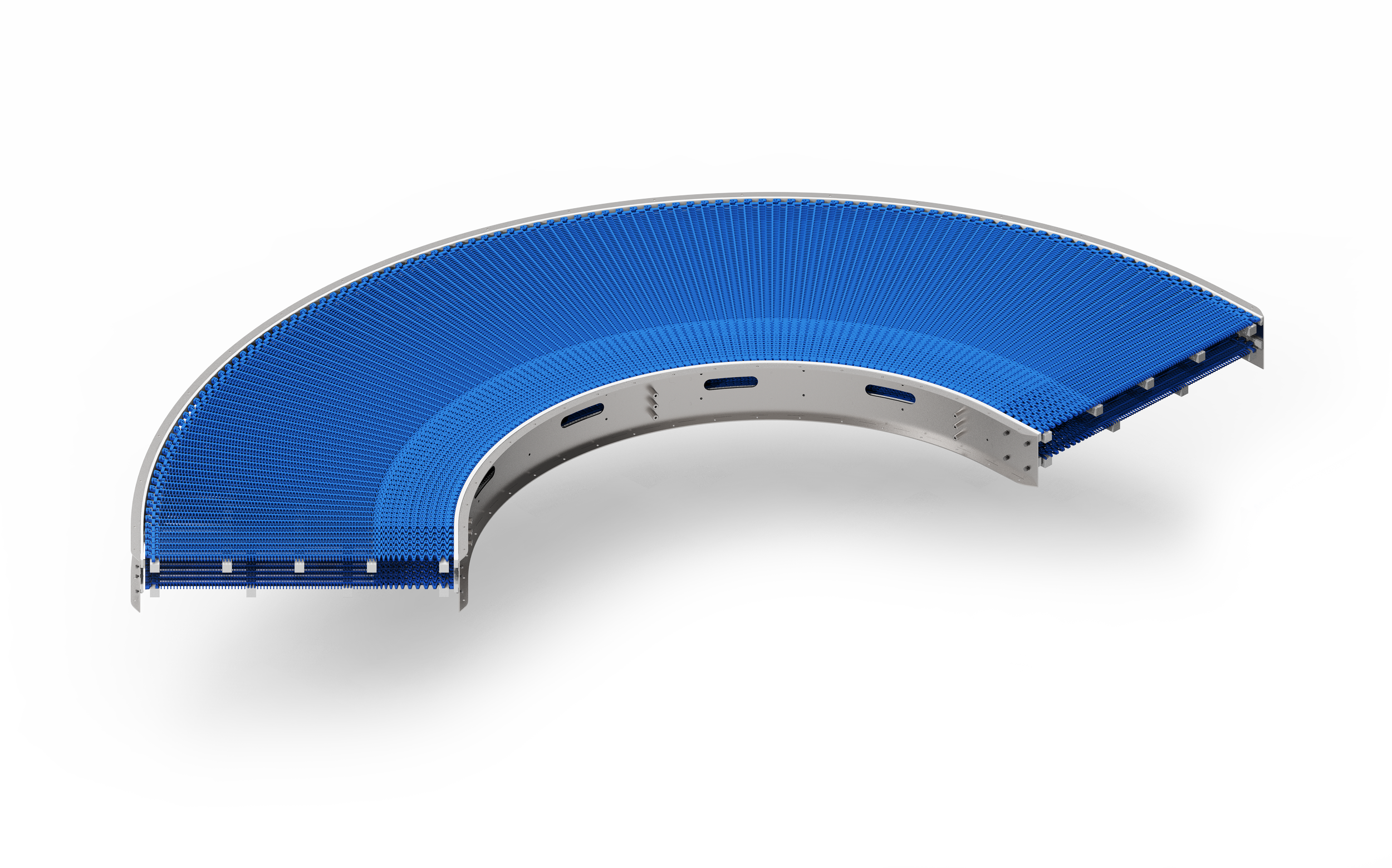 It is important that conveyors turn along a gradual, smooth, calculated curve. If there are misalignments between the concentric metal frames, the belt has a tendency to “jump” out of place, causing a serious breakdown in the system.