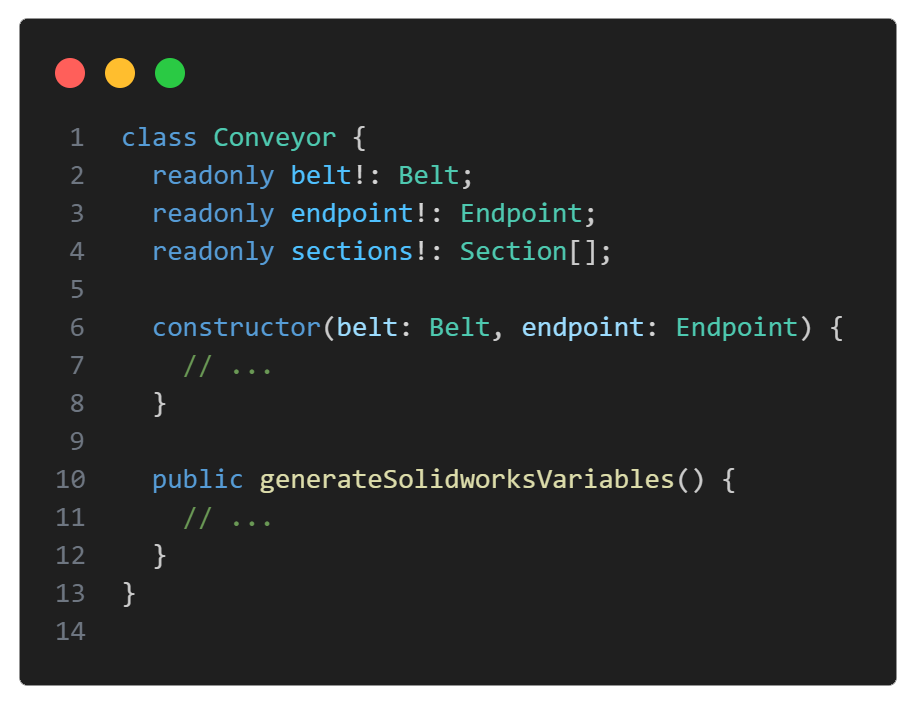 I began representing these dependencies and relationships in code (TypeScript) rather than in CAD (Solidworks).