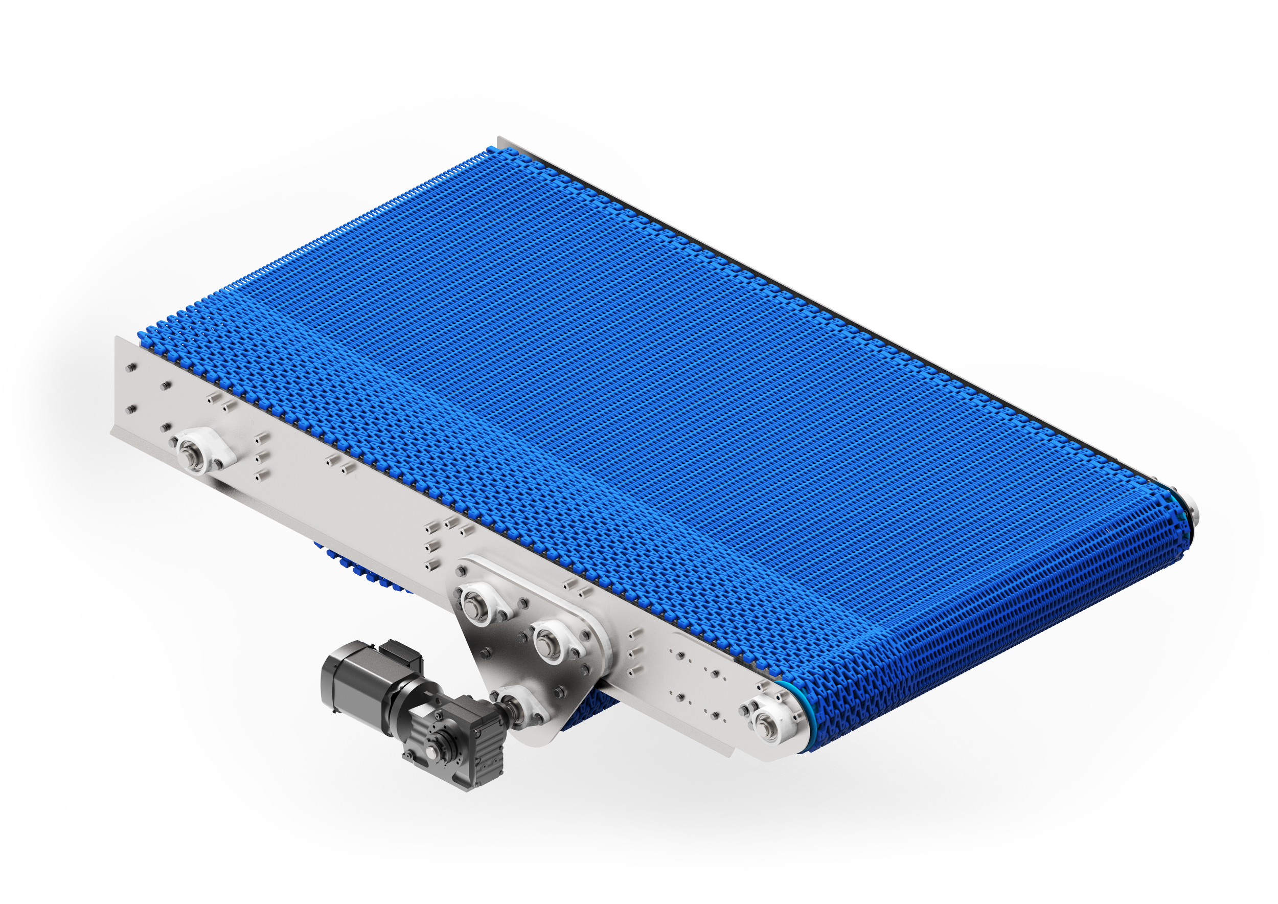 Each conveyor has a drive section. This section pulls plastic belting through the system.